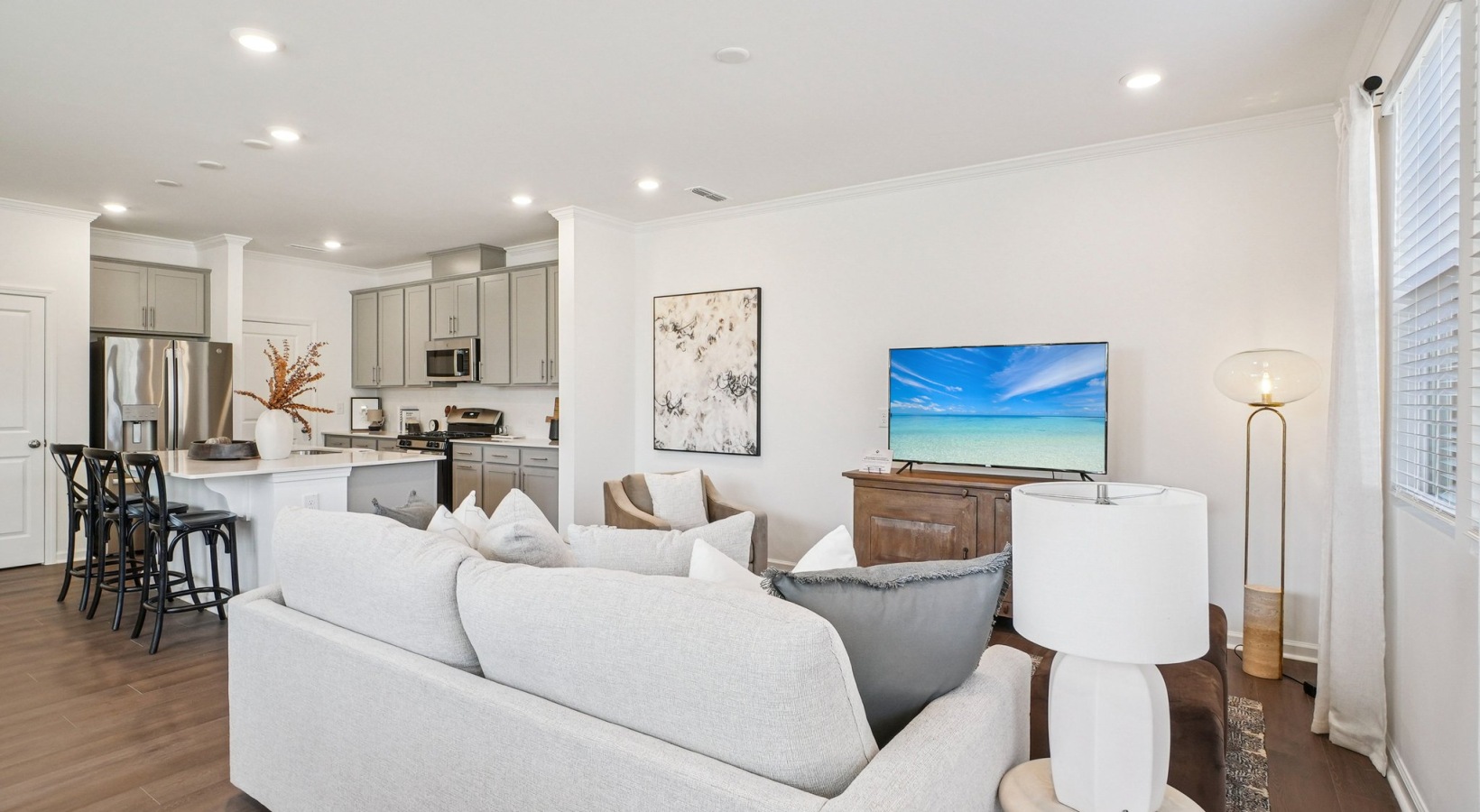 Browse the photo gallery and get a closer look at the inviting spaces that define our Durham, NC, townhomes at ABODE at Stella View. From bright, open interiors and contemporary kitchens to private garages and screened back porches, every detail is designed to support a comfortable and connected lifestyle. You will also notice the thoughtful features that make daily living easier, including spacious layouts, modern finishes, and welcoming outdoor areas that extend your living space.